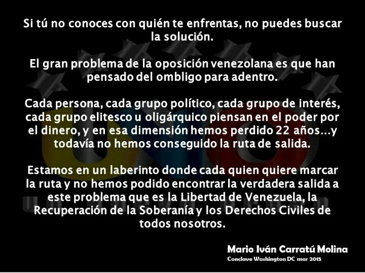 “...he leído un grueso expediente que rueda profusamente en amplios sectores del país, donde se narra detalladamente, con documentos y hechos comprobables, la existencia de un enorme y sumamente costoso laboratorio de guerra sucia que opera desde el exterior y en Venezuela contra determinados partidos y dirigentes de la oposición [...] Curioso que ese enorme, costoso y sucio aparato no fue creado para combatir al gobierno del que dicen ser adversarios intransigentes y al que aseveran querer sustituir con los políticos bajo sus órdenes, sino para atacar a los opositores que nos hemos resistido a ser peleles al servicio de esa mafia que por decenios y sin sacar un solo voto saqueó impunemente a este país valiéndose del chantaje a través de los medios de comunicación que una vez poseyeron y desde los bancos que para salvación del público ya no dirigen. [...] No tengo dudas que el ensamblaje de toda la información ha sido hecho por operarios del oficialismo valiéndose, como es su costumbre, de grabaciones telefónicas, delaciones, infiltraciones, sustracción de documentos, intercepciones de correos y demás. [...] Que el laboratorio, la mafia de la que depende y sus fechorías convienen al gobierno, lo comprueba no sólo la circunstancia de que no toca al régimen ni con el pétalo de una rosa, sino que éste en contraprestación protege los lugares donde esos basureros operan, cuyas direcciones son harto conocidas y constan en el mismo legajo que el gobierno ensambló.”
